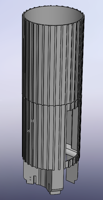 The entire recovery system now rests within a custom made parachute bay. This houses the two receiving boxes, the TGD and the full parachute package. It has been designed to ensure that during arming at the launch pad the components inside do not move from their original position and no fabric intervenes in the arming procedure. This solves our issues of a clean assembly and gives an overall easier package to work with. The original plan was to manufacture the bay using composite materials however due to the complex shape to fit all components a mold could not be created to accurately perform layups for the shape. Instead it is 3D printed using ABS as the filament material.