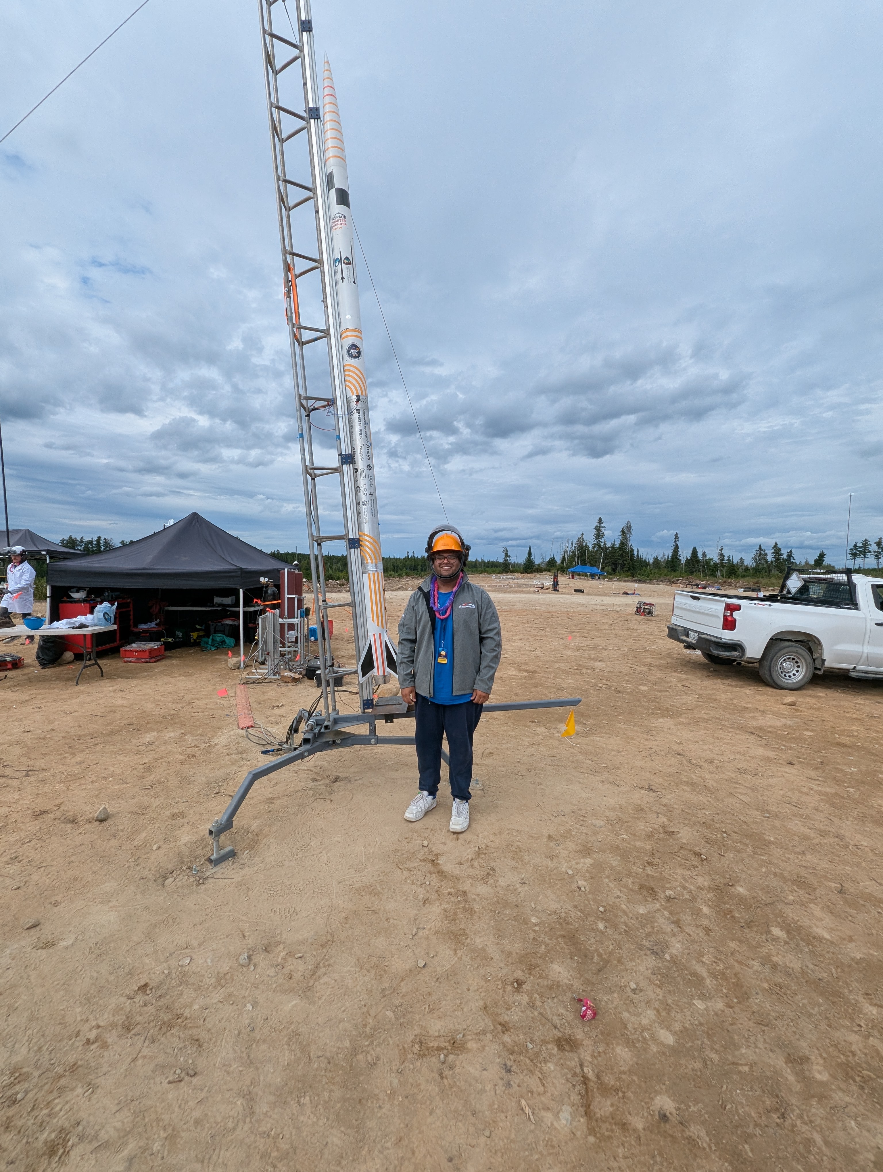 The hybrid rocket had a nominal lift-off, however due to issues with the rockets' slenderness ratio we faced shredding in our couplers, resulting in early deployment of the recovery system. We were able to recover few recovery electronics along with our SRAD body tube intact and unfortunately the full parachute and reefing electronics went ballistic in the forest with no signs of recovering any hardware even after two long hikes through the woods.